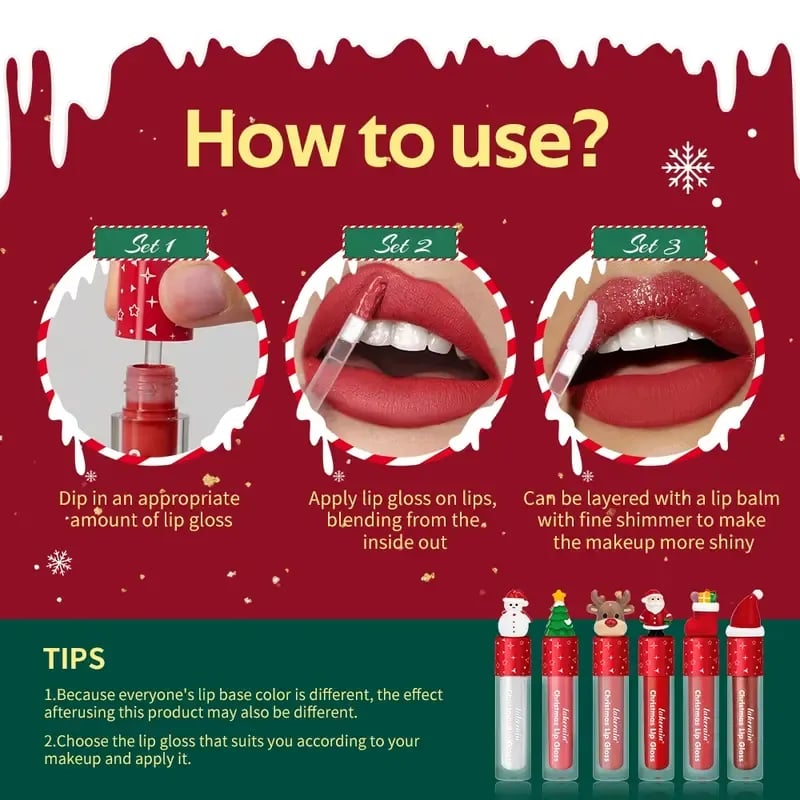 🔥LAST DAY 60% OFF 🎅💄✨ Christmas Lip Gloss Set – 6 Colors